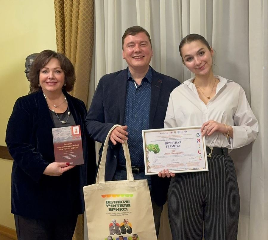 Nuestra universidad ha demostrado una vez más que se encuentra en el centro del diálogo de los BRICS: en la clausura solemne de la etapa brasileña del Programa Internacional Socio-cultural y Empresarial “Los pueblos de los BRICS eligen la vida” y del proyecto “Grandes Maestros de los BRICS: el código cultural-moral de la unificación” en Moscú, la rectora de KIU, Asia Timiriásova, presentó los resultados del trabajo de nuestra institución como participante activa en las iniciativas de los BRICS. La intervención de la rectora tuvo lugar en la mesa redonda “Un siglo de diplomacia pública de Rusia: lecciones del pasado y oportunidades del futuro”, que reunió a una amplia gama de participantes interesados en el desarrollo de la cooperación humanitaria y diplomática dentro del marco de los BRICS.