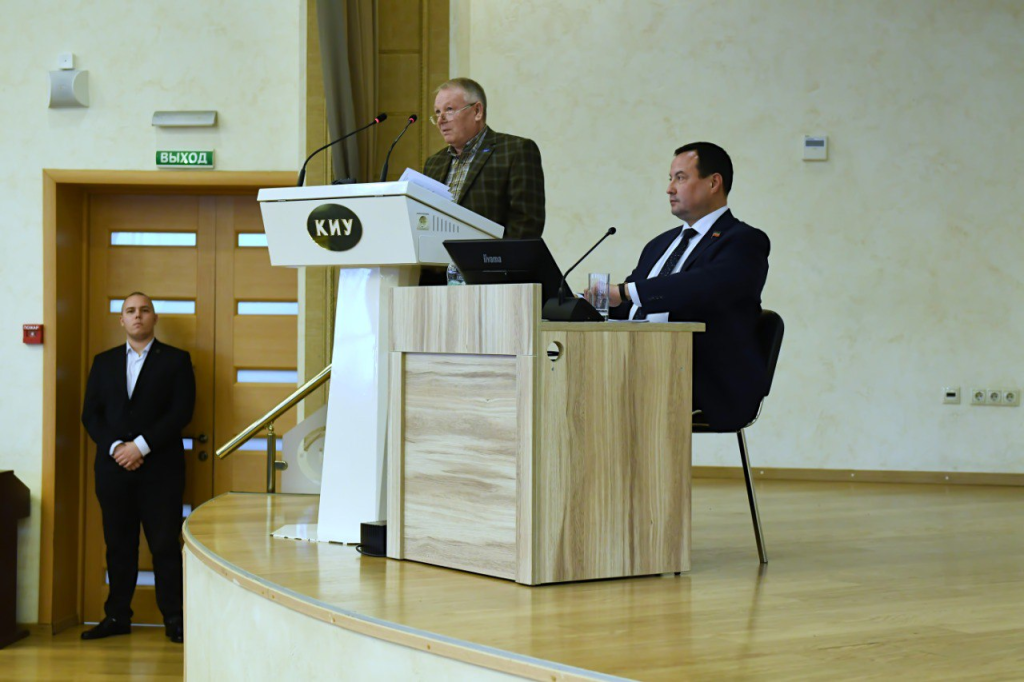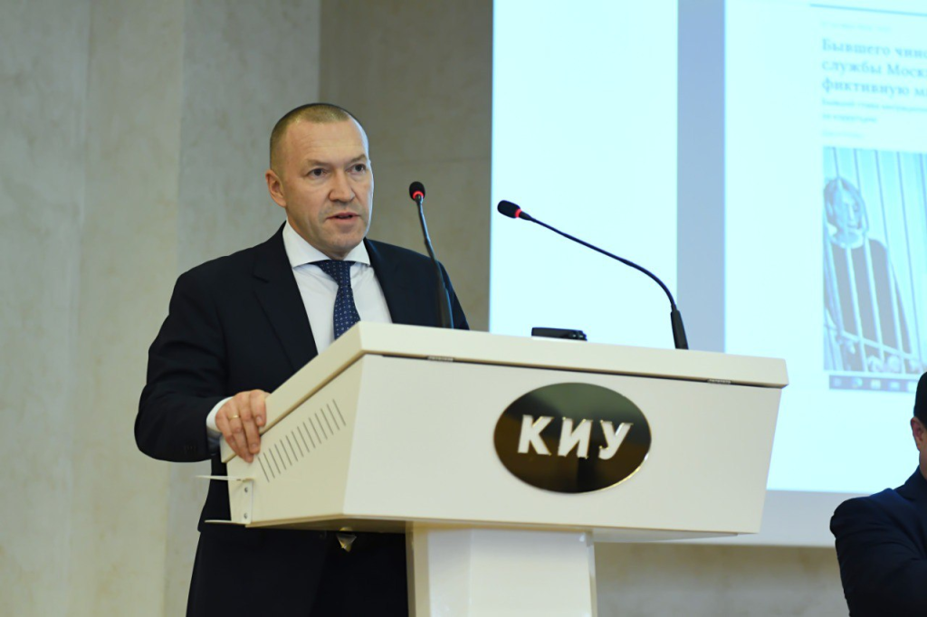 Un evento importante fue la presentación conjunta de Rinat Fazýlov, vicepresidente del Comité de Legalidad y Orden Público del Consejo de Estado de la RT, y del primer vicerrector de la KIU, vicerrector de Investigación Científica, Ígor Bikéyev. Presentaron un informe sobre las medidas para prevenir la corrupción en el ámbito de los servicios migratorios en el contexto de la seguridad nacional de Rusia.
