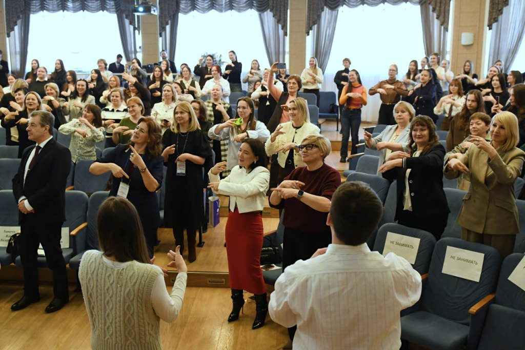 Cuestiones actuales sobre la salud reproductiva y la paternidad responsable fueron planteadas en una presentación conjunta de Margarita Filatova-Safronova, Jefa del Laboratorio “Tecnologías de la Educación Inclusiva”, y Vladimir Filatov, Médico Jefe de la Policlínica Municipal No. 21. El matrimonio presentó un informe sustancial, y Margarita Filatova-Safronova realizó un sentido baile dedicado a la familia, al que la audiencia en la sala se unió gustosamente.