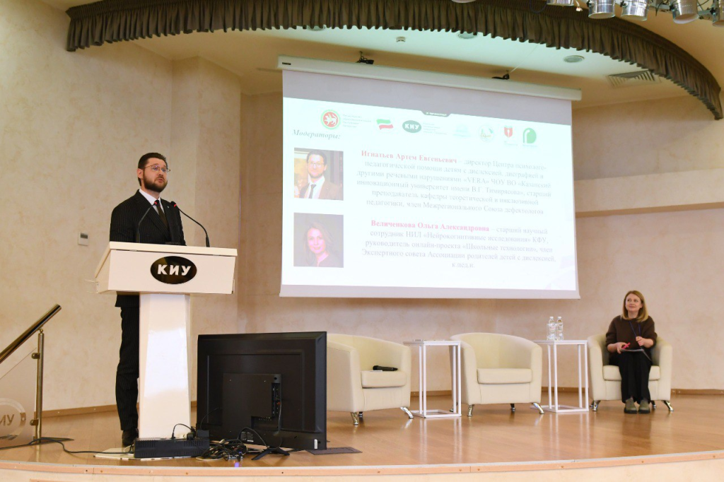 Los moderadores fueron Artyom Ignatiev, Director del Centro “VERA” de Ayuda Psicológico-Pedagógica para Niños con Dislexia, Disgrafía y Otros Trastornos del Habla de la KIU, Profesor Senior del Departamento de Pedagogía Teórica e Inclusiva, Miembro de la Unión Interregional de Educadores Especializados; y Olga Velichenkova, Candidata a Doctora en Ciencias Pedagógicas, Investigadora Senior del Laboratorio de Investigación “Investigación Neurocognitiva” de la KFU, Directora del proyecto en línea “Tecnologías Escolares”, Miembro del Consejo Experto de la Asociación de Padres de Niños con Dislexia.
