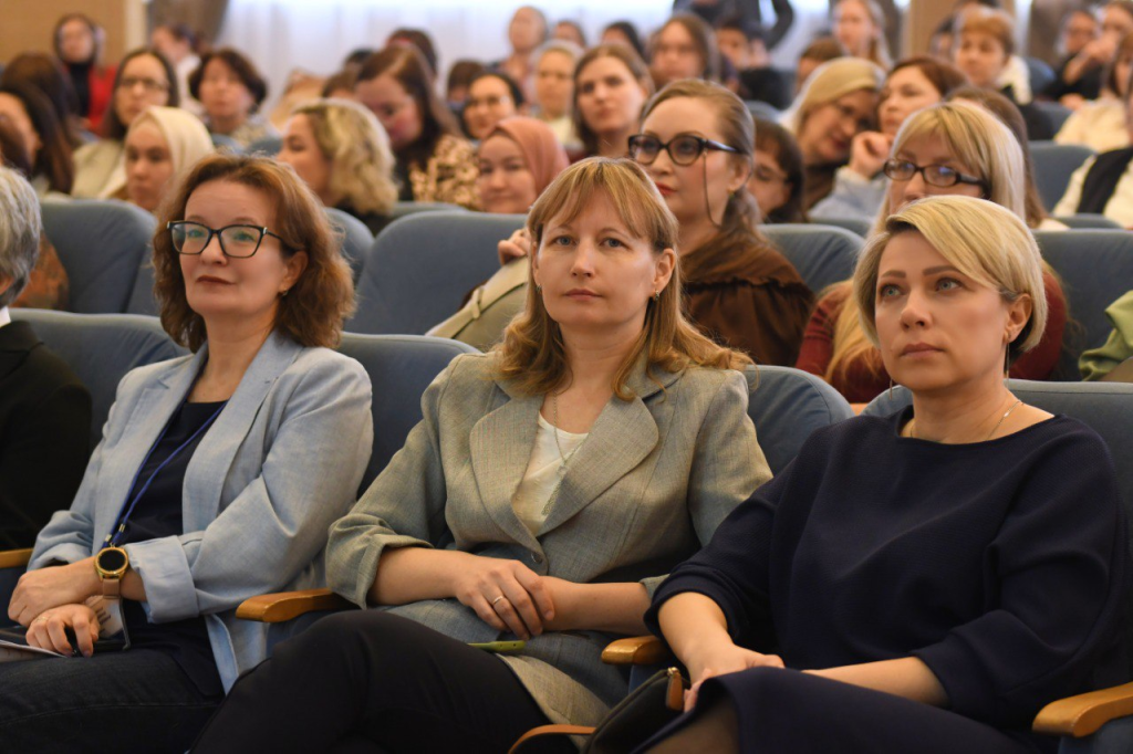 Los participantes fueron recibidos por Natalia Yultyeva (Metodóloga Senior del Departamento de Información y Metodología del Departamento de Educación de Kazán), Olga Grigorieva (Decana de la Facultad de Psicología y Pedagogía de la KIU, Candidata a Doctora en Ciencias Biológicas, Profesora Asociada) y Natalia Paranina (Jefa del Departamento de Pedagogía Teórica e Inclusiva de la KIU, Candidata a Doctora en Ciencias Pedagógicas, Profesora Asociada).